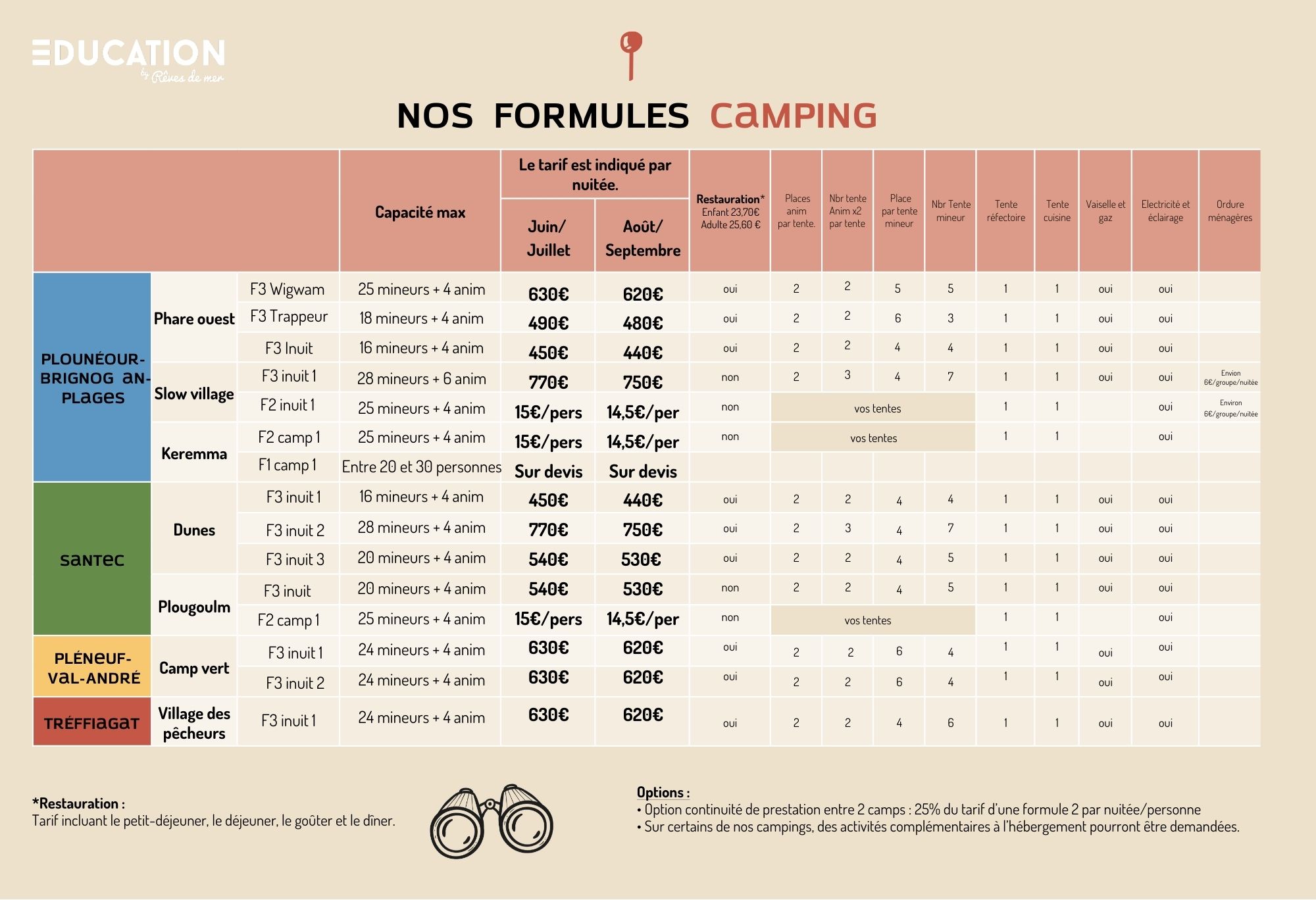 Tarifs – Education – Camping